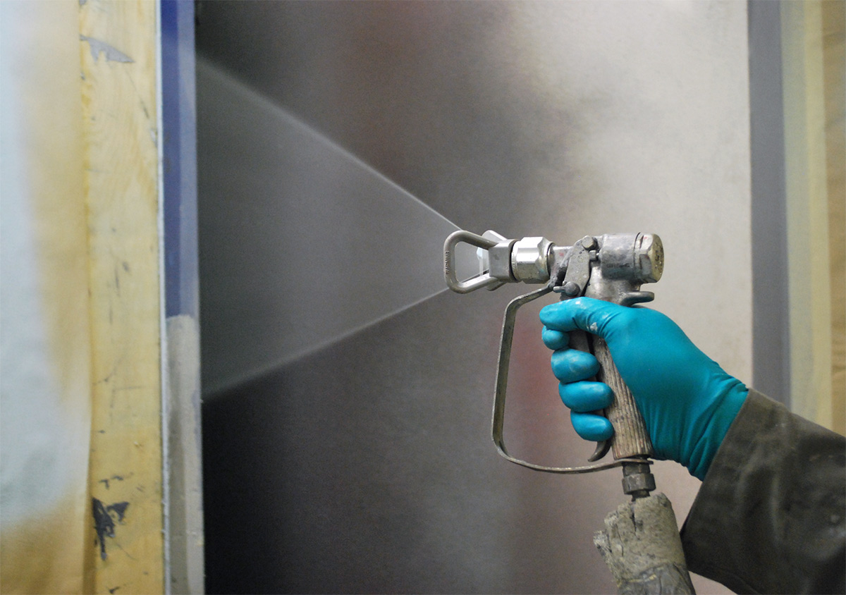• Szybka aplikacja natryskiem bez narażenia na zużycie ścierne sprzętu natryskowego; w razie potrzeby można również nakładać pędzlem